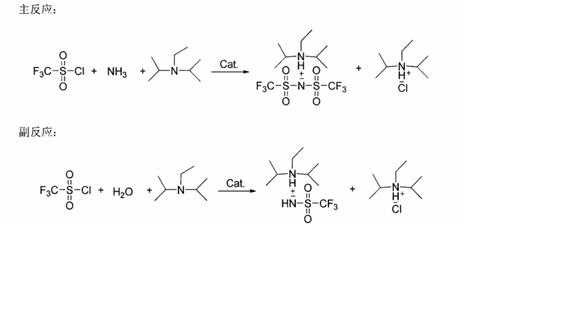2)在二氯甲烷中, 三氟甲基磺醯氯採用氨氣氨解, 在反應期間, 用N, N. 乙基二異丙胺(EDIPA)中和反應所放齣的氯化氫。