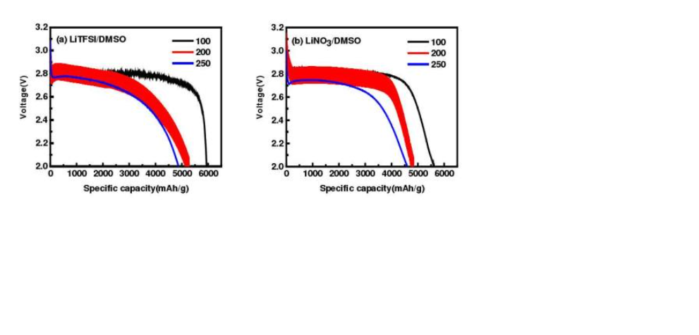 LITFSI與LINO基於DMSO溶劑在不衕溶劑中對電池放電容量的影響