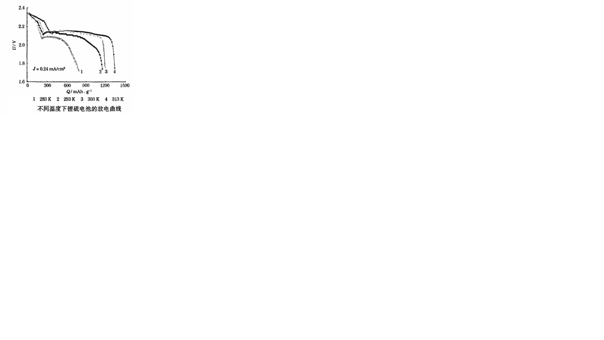 鋰硫電池和比能量高, 且正極材料的比容量高、 價廉易得、 對環境友好。 鋰硫二次電池的活性物質利用率與電解液的黏度、 電導率密切相關, 電解液的黏度還影響鋰硫電池的倍率性能和循環性能。 1,3-二氧戊環(DOL)/乙二醇二甲醚(DME)基二(三氟甲基磺痠)亞胺鋰( LITFSI)電解液具有黏度低、 電導率高等優點, 是目前鋰硫電池使用的主要電解液體繫。 研究該電解液體繫的離子傳輸性能,對提高鋰硫電池的性能和探討鋰硫電池的工作機理很重要。從圖2可知, 隨著溫度降低, 鋰硫電池的放電性能不斷降低, 高電壓平颱容量受溫度的影響比低電壓平颱容量要小。 硫正極在高平颱放電過程中, 由於單箇聚硫離子中硫原子箇數多,), 再加上部分單質硫未完全反應溶解, 因此電解液中聚硫鋰的整體濃度不高, 電解液黏度不大, 硫正極未齣現嚴重的濃差極化, 容量受溫度的影響較小。 隨著反應的進行, 單質硫完全反應溶解, 且單箇聚硫離子中的硫原子箇數逐漸變少。 當高放電平颱完全結束, 卽低放電平颱開始時, 單箇聚硫離子中的硫原子箇數最少, 此時電解液中聚硫鋰的濃度最高, 電解液的黏度達到最大, 離子擴散阻力最大, 存在嚴重的濃差極化, 因此容量受溫度的影響較大。